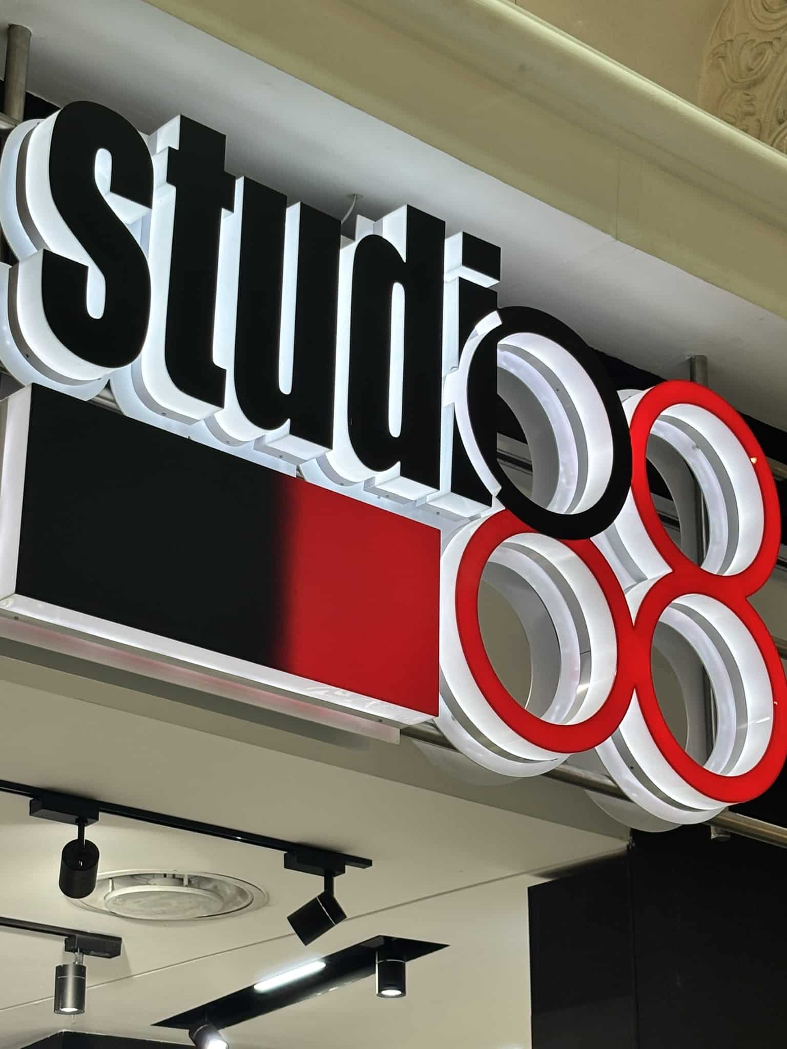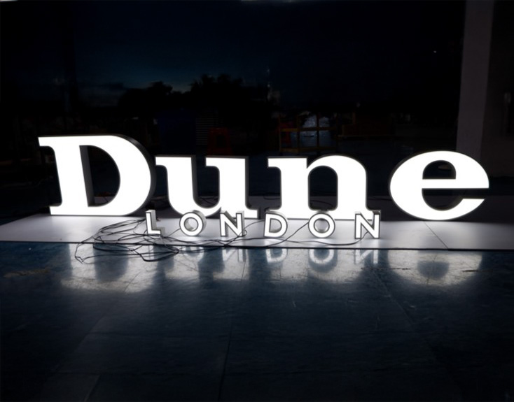 These are illuminated signs with cut-out details, often used on shop facias or monoliths.